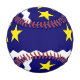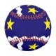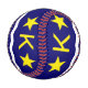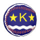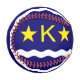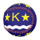 Baseball with design with flag of Kinshasa, capital city of Democratic Republic of Congo, blue flag with white wave, two golden stars and letter ‘K’ in the centre