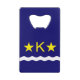 Bottle Opener with design with flag of Kinshasa, capital city of Democratic Republic of Congo, blue flag with white wave, two golden stars and letter ‘K’ in the centre