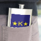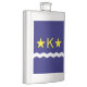 Flask with design with flag of Kinshasa, capital city of Democratic Republic of Congo, blue flag with white wave, two golden stars and letter ‘K’ in the centre