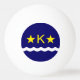 Ping pong ball design with flag of Kinshasa, capital city of Democratic Republic of Congo, blue flag with white wave, two golden stars and letter ‘K’ in the centre