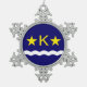 Snowflake Ornament Flag with design with flag of Kinshasa, capital city of Democratic Republic of Congo, blue flag with white wave, two golden stars and letter ‘K’ in the centre