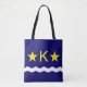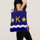 Tote bag with design with flag of Kinshasa, capital city of Democratic Republic of Congo, blue flag with white wave, two golden stars and letter ‘K’ in the centre