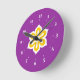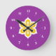 Clock with a design with the flag of Kyoto Prefecture in Japan (京都府, Kyōto-fu), a purple flag with a white and yellow symbol of a cherry flower