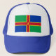 Hat with design with a flag of historic county of Lincolnshire, in England, Great Britain; green and blue flag with red and yellow cross and a Fleur-de-Lis in the centre
