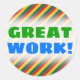 This sticker design features a pattern of stripes (lines) coloured yellow, green and red. These colours were inspired by those of the national flag of Lithuania. This could be a great gift for somebody from Lithuania, or perhaps for somebody who just really likes the country of Lithuania or Lithuanian culture. It also features the motivational saying "GREAT WORK!" in green and blue coloured text. Stickers like these could perhaps be used by a teacher, an educator or a tutor to acknowledge encourage a student who has done well on a test, quiz, paper, project, or some other academic assignment. [~Z0000117]