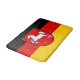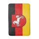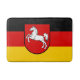 Bath mat flag of Lower Saxony; design with horizontal tricolor of black, red and yellow (golden), with state’s emblem with an illustration of a white horse in the centre