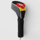 Golf driver cover with flag of Lower Saxony; design with horizontal tricolor of black, red and yellow (golden), with state’s emblem with an illustration of a white horse in the centre
