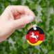 Button Keychain with flag of Lower Saxony; design with horizontal tricolor of black, red and yellow (golden), with state’s emblem with an illustration of a white horse in the centre