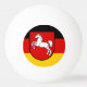 Ping pong ball with flag of Lower Saxony; design with horizontal tricolor of black, red and yellow (golden), with state’s emblem with an illustration of a white horse in the centre