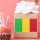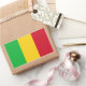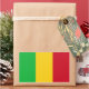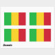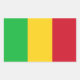 The flag of Mali (French: Drapeau du Mali) is a tricolour with three equal vertical stripes. From the hoist (the place where the flagpole meets the flag) the colours are green, gold, and red, the pan-African colours. The flag is identical to the flag of Guinea, with the exception that the colours are in reverse order. The current flag was adopted on March 1, 1961. The original flag was adopted on April 4, 1959, when Mali joined the Mali Federation. This flag was the same, except the golden stripe had a human stick figure, a kanaga, in black, with arms raised to the sky. The figure was removed due to the opposition of Islamic fundamentalists (see Islamic aniconism, the belief against making pictures of the human figure). (Mali is about 90% Muslim.) The flag adopted in 1959 for the Confederation was an imitation of the flag of Ghana, but following the style of the French Tricolore. It was changed with a black emblem known as a kanaga, a stylised human figure. The colours were intended to reflect a unity with other African nations. After the two countries split up in 1960, the flag was kept for use in Mali until March 1, 1961, when the kanaga emblem was dropped.