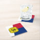 Paper coaster with flag of city of Memphis, Tennessee; red, white and blue flag with yellow emblem with an illustration of ship
