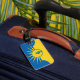 Luggage Tag with flag of city Mesa, Arizona; yellow and blue flag with stylised illustrations of desert, cactus and rising sun