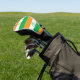 Golf driver cover with flag of city of Miami, Florida; flag with three horizontal bands of orange, white and green with emblem with an illustration of a palm tree in the centre