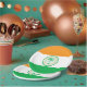 Paper Plate with flag of city of Miami, Florida; flag with three horizontal bands of orange, white and green with emblem with an illustration of a palm tree in the centre
