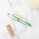 Corkscrew with flag of city of Miami, Florida; flag with three horizontal bands of orange, white and green with emblem with an illustration of a palm tree in the centre