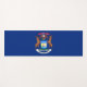 This design features the flag of Michigan, a state in the Great Lakes and Midwestern regions of the United States. Its name comes from the Native American word "mishigami", meaning "large water" or "large lake". The flag of the state of Michigan depicts the state's coat of arms on a dark blue background. The design features three Latin mottos. "E Pluribus Unum" means "Out of many, one," a motto of the United States; "Tuebor" means "I will defend"; and "Si Quæris Peninsulam Amœnam Circumspice," means "If you seek a pleasant peninsula, look about you", which is the official state motto. A resident of Michigan is known as a Michigander or Michiganian. The state capital of Michigan is Lansing. Other major cities and towns in Michigan include Detroit, Grand Rapids, Warren, Sterling Heights, Ann Arbor, Dearborn, Clinton Charter Township, Canton Charter Township and Livonia. The ten largest counties in Michigan state are Wayne County, Oakland County, Macomb County, Kent County, Genesee County, Washtenaw County, Ottawa County, Ingham County, Kalamazoo County and Livingston County.