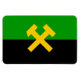 This design features the flag of miners, which is intended to represent all workers in the mining industry. Mining is the process of digging valuable geological materials out of the ground. Mining can include the extraction of metals and minerals, like coal, diamond, gold, silver, platinum, copper, tin and iron. Mining can also include the extraction of other valuable commodities like oil and natural gas.