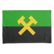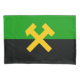 This design features the flag of miners, which is intended to represent all workers in the mining industry. Mining is the process of digging valuable geological materials out of the ground. Mining can include the extraction of metals and minerals, like coal, diamond, gold, silver, platinum, copper, tin and iron. Mining can also include the extraction of other valuable commodities like oil and natural gas.