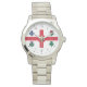 Watch with the flag of Montreal, the most populous city in the province of Quebec, Canada. A white flag with a red cross, a white pine, a blue Fleur-de-lys, a red Rose of Lancaster, a shamrock, and a thistle