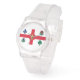 Watch with the flag of Montreal, the most populous city in the province of Quebec, Canada. A white flag with a red cross, a white pine, a blue Fleur-de-lys, a red Rose of Lancaster, a shamrock, and a thistle