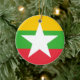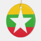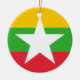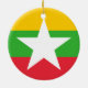 This design features the national flag of Myanmar or Burma (officially known as the Republic of the Union of Myanmar), which is a country in Southeast Asia. Myanmar is bordered by Bangladesh and India to its northwest; China to its northeast; Laos and Thailand to its east and southeast; and the Andaman Sea and the Bay of Bengal to its south and southwest. The capital city of Myanmar is Naypyidaw, and the country's largest city is Yangon (Rangoon). Other major cities in Myanmar include Mandalay, Bago, Hpa-An, Taunggyi, Monywa, Myitkyina, Mawlamyine and Magway.