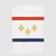 Golf Towel with flag of city of New Orleans, Louisiana; white flag with red and blue stripes and three golden fleur-de-lys