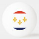 Ping pong ball with flag of city of New Orleans, Louisiana; white flag with red and blue stripes and three golden fleur-de-lys