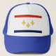 Hat with flag of city of New Orleans, Louisiana; white flag with red and blue stripes and three golden fleur-de-lys