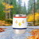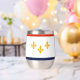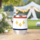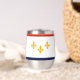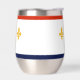 Wine Tumbler with flag of city of New Orleans, Louisiana; white flag with red and blue stripes and three golden fleur-de-lys