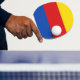The flag consists of three horizontal stripes yellow, red and blue.