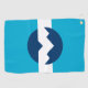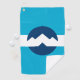 Golf Towel with a design with the flag of Ogden, Utah. A blue and white flag with mountain peaks in the centre