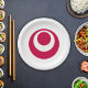 Paper Plate with a design with the flag of Okinawa Prefecture in Japan (沖縄県 , Okinawa-ken), a white flag with a red symbol