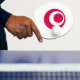 Ping Pong Paddle with a design with the flag of Okinawa Prefecture in Japan (沖縄県 , Okinawa-ken), a white flag with a red symbol