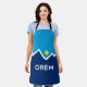 Apron with a design with the flag of Orem, Utah. A blue, white, and yellow flag with mountain peaks and the sun in the centre