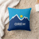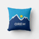 Pillow with a design with the flag of Orem, Utah. A blue, white, and yellow flag with mountain peaks and the sun in the centre