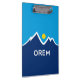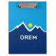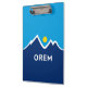 Clipboard with a design with the flag of Orem, Utah. A blue, white, and yellow flag with mountain peaks and the sun in the centre