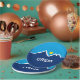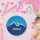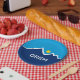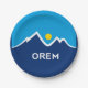 Paper Plate with a design with the flag of Orem, Utah. A blue, white, and yellow flag with mountain peaks and the sun in the centre
