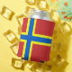 Can cooler with design with a flag of historic county of Orkney, in Scotland, Great Britain; red flag with blue and yellow Nordic cross