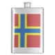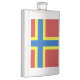 Flask with design with a flag of historic county of Orkney, in Scotland, Great Britain; red flag with blue and yellow Nordic cross