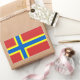 Sticker with design with a flag of historic county of Orkney, in Scotland, Great Britain; red flag with blue and yellow Nordic cross