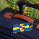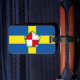 Luggage Tag with design with a flag of historic county of Pembrokeshire, in Wales, Great Britain; blue azure flag with a yellow cross and white Tudor rose in the centre