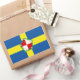 Sticker with design with a flag of historic county of Pembrokeshire, in Wales, Great Britain; blue azure flag with a yellow cross and white Tudor rose in the centre