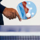 Ping Pong Paddle with a design with the flag of Peoria, Arizona. A blue, brown, and white flag with mountain peaks and three stars