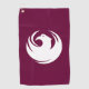 Golf Towel with a design with the flag of Phoenix, Arizona. A maroon flag with a white phoenix in the centre