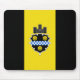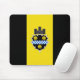 Mousepad with flag of city of Pittsburgh, Pennsylvania; flag with three vertical bands of black and yellow with illustration of castle and shield in the centre