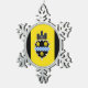Snowflake Ornament Flag with flag of city of Pittsburgh, Pennsylvania; flag with three vertical bands of black and yellow with illustration of castle and shield in the center