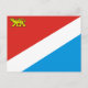 Postcard with flag of Primorsky krai, flag with diagonal tricolor of red, white and blue, with a Siberian tiger charge in the red field