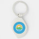 Keychain with a design with the flag of Provo, Utah. A blue flag with the Provo City logo in the centre. The logo represents the Utah lake and nearby mountain peaks with the rising sun in the background