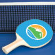 Ping Pong Paddle with a design with the flag of Provo, Utah. A blue flag with the Provo City logo in the centre. The logo represents the Utah lake and nearby mountain peaks with the rising sun in the background