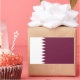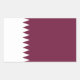 The flag of Qatar (Arabic: علم قطر) is in the ratio of 11:28. It is maroon with a broad white serrated band (nine white points) on the hoist side. The meaning of Qatar's flag is: The white colour reflects the internationally recognised symbol of peace The maroon colour symbolises the blood shed during the several wars Qatar had undergone, particularly in the second half of the 19th century. The nine-point serrated line indicates that Qatar is the 9th member of the "reconciled Emirates" of the Persian Gulf in the wake of concluding the Qatari-British treaty in 1916. It is very similar to the flag of the neighbouring country of Bahrain, which has fewer points, a 3:5 proportion, and a red colour instead of maroon. A popular but fanciful tale referring to the maroon colour and the similarity to the red Bahrain flag, is that purple is what becomes of red fading in the Gulf sun.[1] The legend goes that Qatar's flag used to be red, and that a new type of dye was used for the original flags. However after being left in the sun, the colour changed to maroon, which was then regarded to be a more beautiful colour (by coincidence). That is also why this specific shade of maroon is called "Qatar Red". Qatar's emir, like Kuwait's, is not known to have a personal standard, nor does any other member of the ruling family